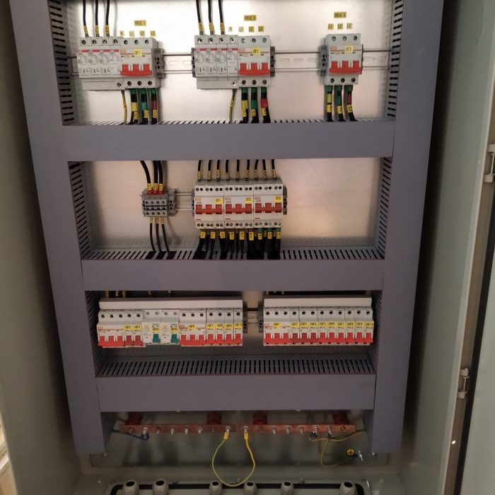 Вводно-распределительные устройства (ВРУ) — одностороннего обслуживания, предназначенные для приема, распределения и учета электроэнергии в сетях 380/220В трехфазного переменного тока частотой 50/60Гц, а также для защиты линий при перегрузках и коротких замыканиях.