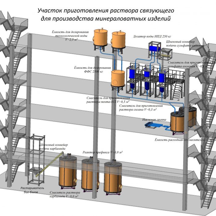 Краткий технологический процесс приготовления раствора связующего для производства минераловатных изделий Участок нейтрализации В настоящее время, для производства теплоизоляционных изделий (ТИИ) в подавляющем большинстве случаев используется связующее на основе карбамидо-фенол-формальдегидной резольной смолы. Следует отметить, что чистая фенол-формальдегидная смола резольного типа (PFR – phenol-formaldehyde resin) имеет лучшие показатели физико-механических свойств ТИИ, изготовленных с её применением, лучшую стабильность […]
